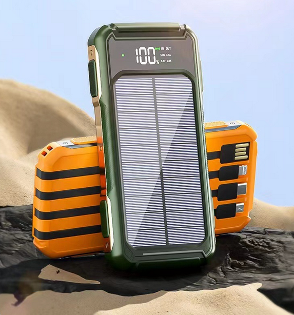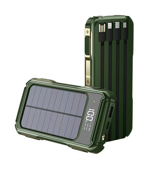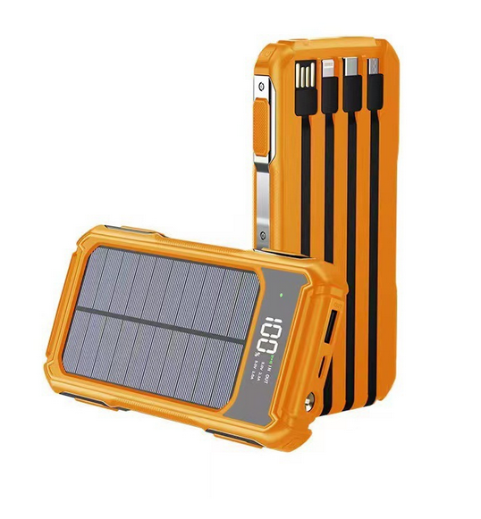 Portable Solar Power Bank 10000mAh 20000mAh Fast Charging External Battery Built-in Cables for Outdoor